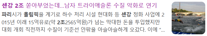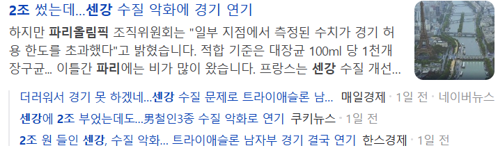 오늘은 여러가지 문제점 중에서도 파리 '센강'의 수질 논란에 대해서 다뤄보려고 합니다.