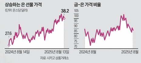미국 지표 둔화로 연준의 조기·큰 폭의 금리인하 기대가 살아나면서 금과 함께 은이 동반 강세를 보였습니다(8월 13일 은 현물 $38대). 금리 하락/달러 약세는 이자 없는 귀금속에 우호적입니다.