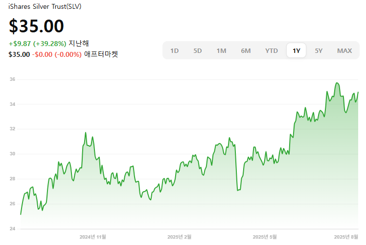 다음은 최근 1년 동안 은 시세를 대표하는 ETF 차트이다.